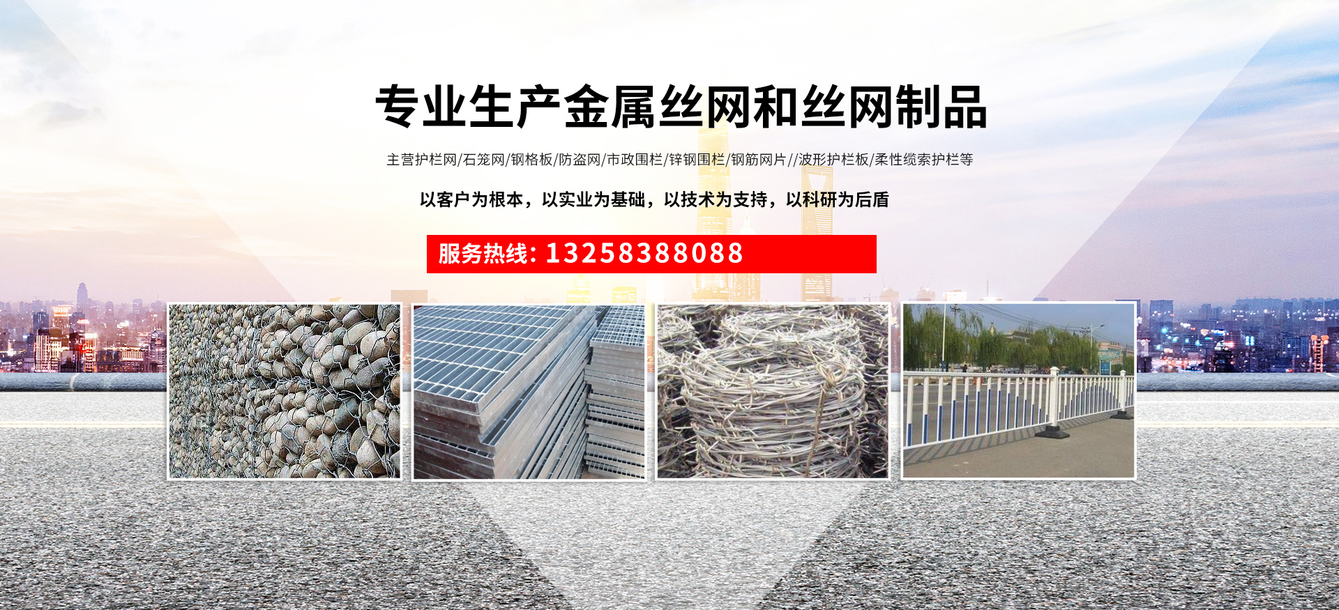 成都宏旭金屬絲網(wǎng)制造有限公司主營護欄網(wǎng)系列、石籠網(wǎng)系列、鋼格板、防盜網(wǎng)、市政圍欄、鋅鋼圍欄、鋼筋網(wǎng)片、聲屏障系列、波形護欄板、柔性纜索護欄、SNS邊坡防護網(wǎng)等其他絲網(wǎng)類產(chǎn)品。特殊規(guī)格可加工定做,也可根據(jù)客戶來圖來樣定做。自創(chuàng)業(yè)以來,公司一直堅持市場為導向,以客戶為根本,以實業(yè)為基礎,以技術為支持,以科研為后盾,集科研、生產(chǎn)、經(jīng)營為一體,不斷研制開發(fā)新產(chǎn)品,開拓市場,走綜合發(fā)展之路。多年來,公司憑借過硬的質量,良好的信譽、優(yōu)質的服務、合理的價格,贏得了市場和商家的一致好評。